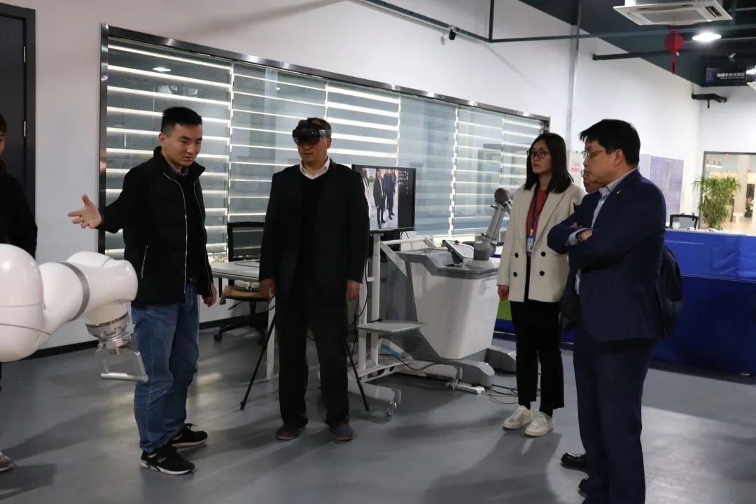 会议结束后,机器人jiuyou.com九游院长黄慧洁带领三一集团专家和领导参观了jiuyou.com九游展厅和重点实验室,并向大家介绍了jiuyou.com九游的主要职能和技术,在智能感知实验室,三一集团领导对MR眼镜颇感兴趣,亲身体验了MR眼镜,在虚拟环境中体验技术之美。