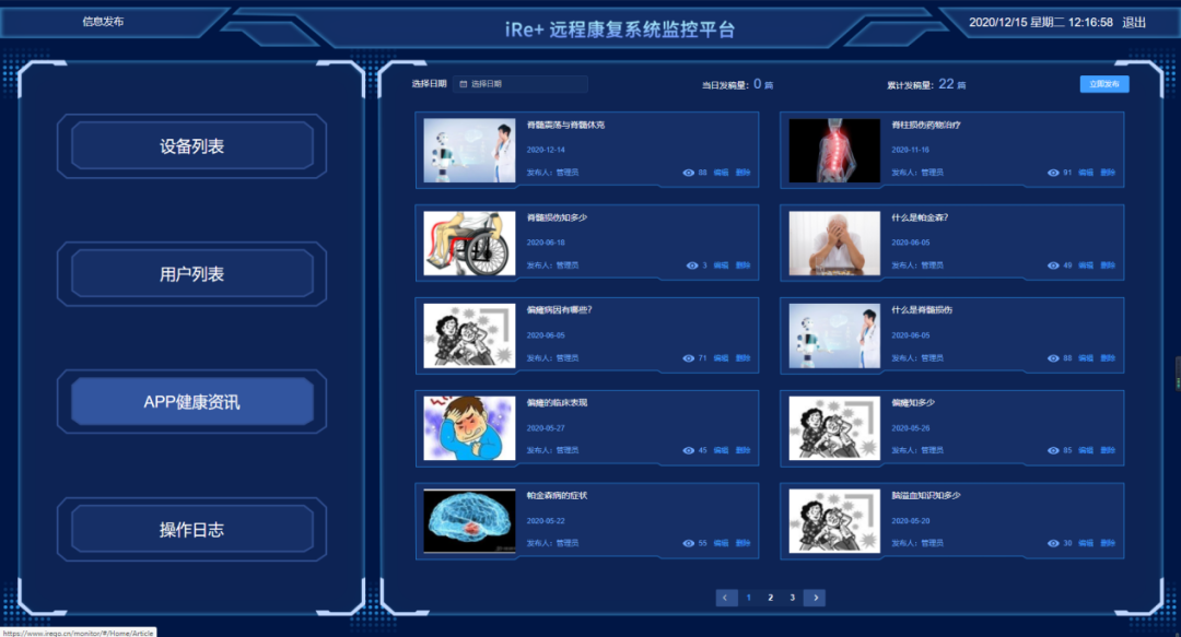 作为一个功能齐全的云平台,还有健康资讯推送和操作日志版块,完全满足机器人企业和其用户的需求。