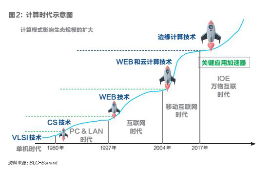 在单机时代,VLSI是基础技术,高级语言和操作系统 是关键应用加速器;进入PC&LAN时代,我们制造了微处理器,而DOS和Windows成为关键应用加速器,更是让计算机走到了我们每一个人的身边,也让人亲身感受到计算机的力量。